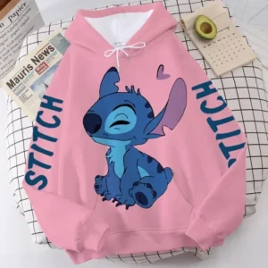 Color: Beige, Size: XL - Disney Hoodie Fashion Stitch Angel Monster Letter Cartoon Sweatshirt Pullover Cute Harajuku Unisex Women's Pocket Top