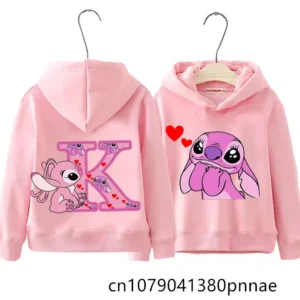 Color: Khaki, Kid Size: 5 - Girls Boys Lilo and Stitch Sportswear Hoodies Casual Fashion Sweatshirts Angel Letter AZ Anime Autumn/Winter Hoodie Kids Hoodies