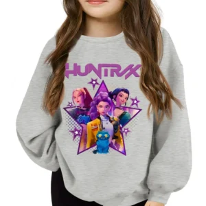 Color: Beige, Kid Size: 4 - KPop Demon Hunters Huntrix Sweatshirts Kids Clothes Long Sleeve Autumn Pullover Boys Girls Hoodies Children Casual O-Neck Tops
