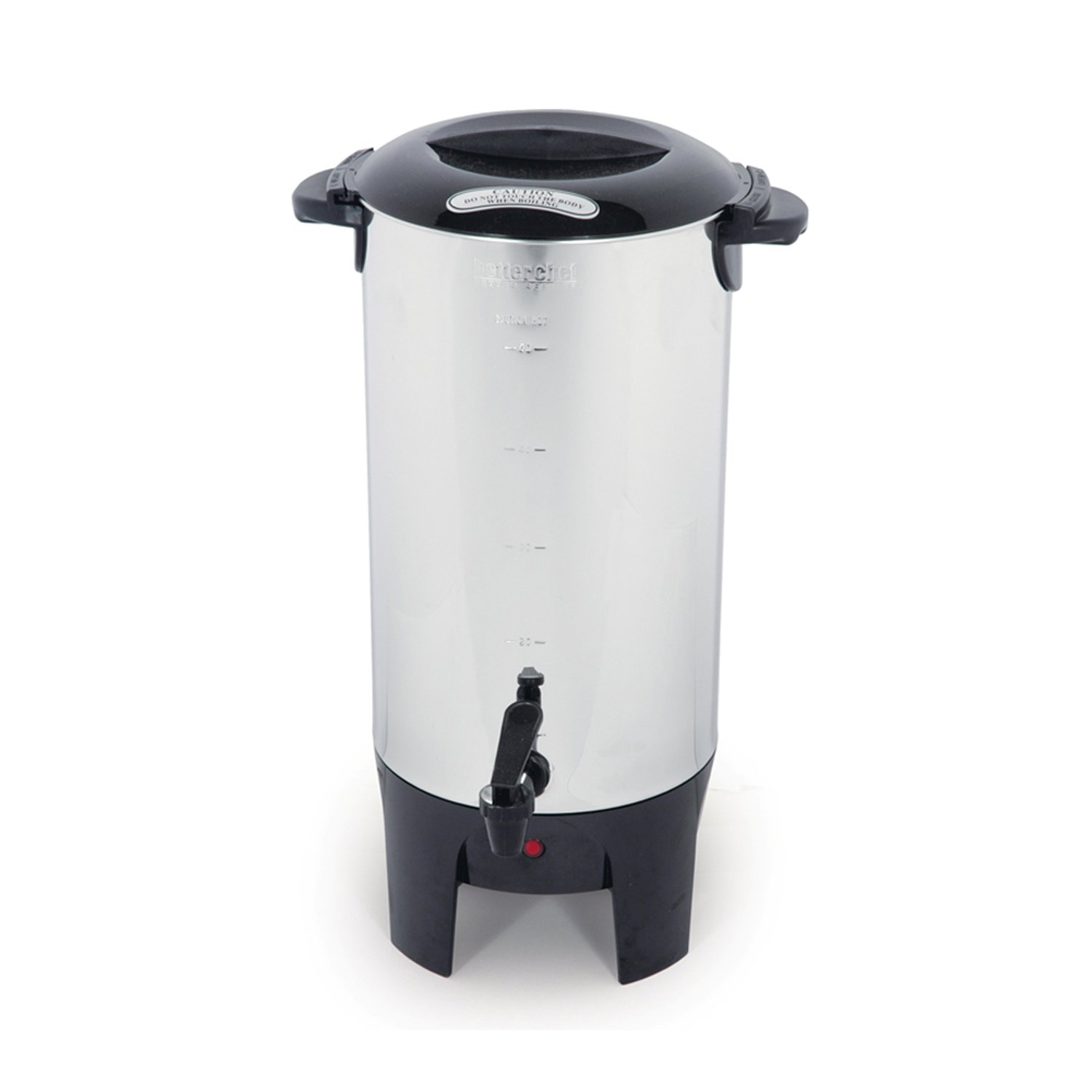 The Better Chef 10-50 Cup Coffeemaker features a stainless-steel construction for fresher tasting coffee and easier cleanup. Makes coffee, tea, hot water for hot cocoa for parties and events. The non-drip spigot ensures for mess free serving to your guests. With the twist-to-lock cover you can be sure that the hot contents will stay put.
