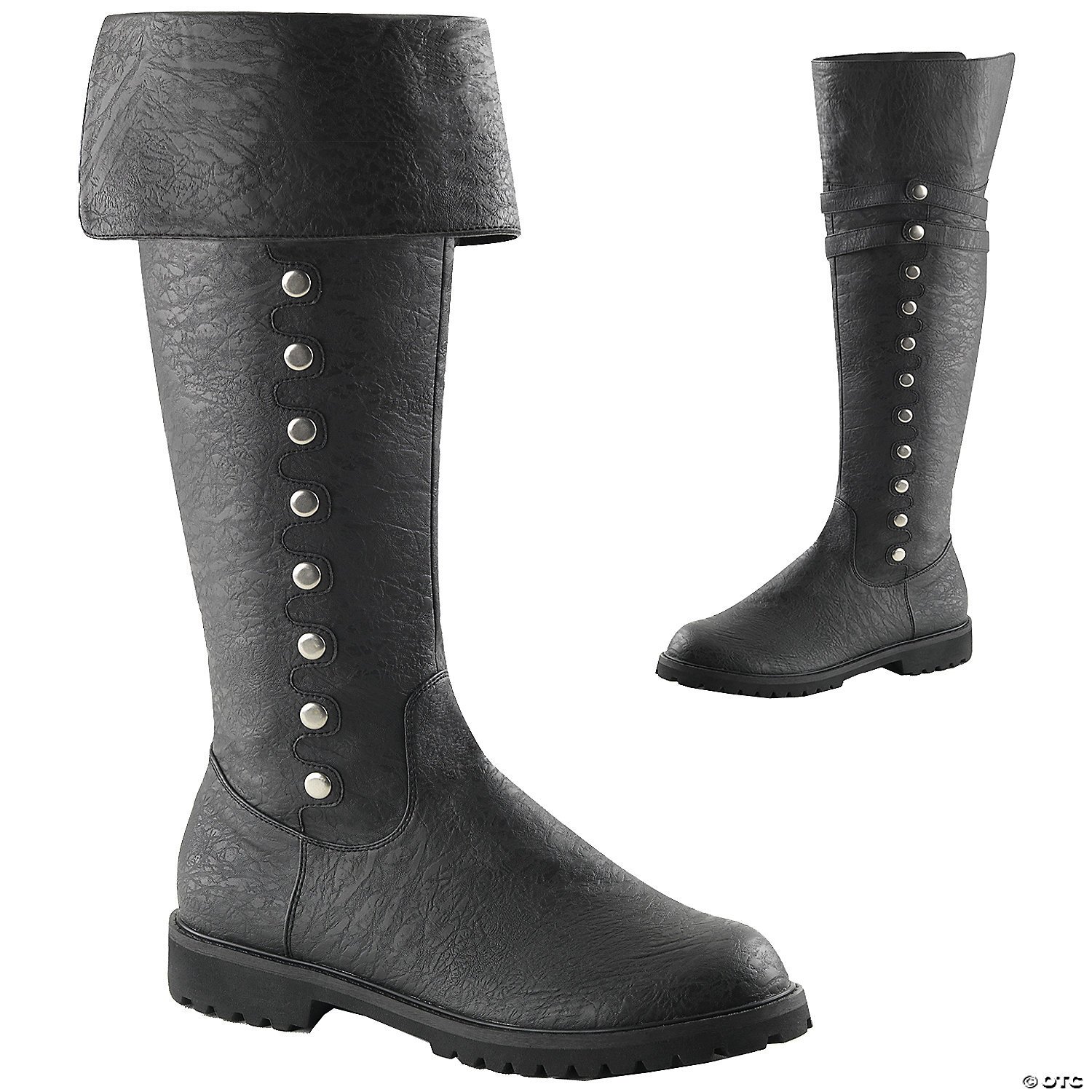 Men’s cuffed, knee high boot with faux button detail with 1 1/2-inch heel.