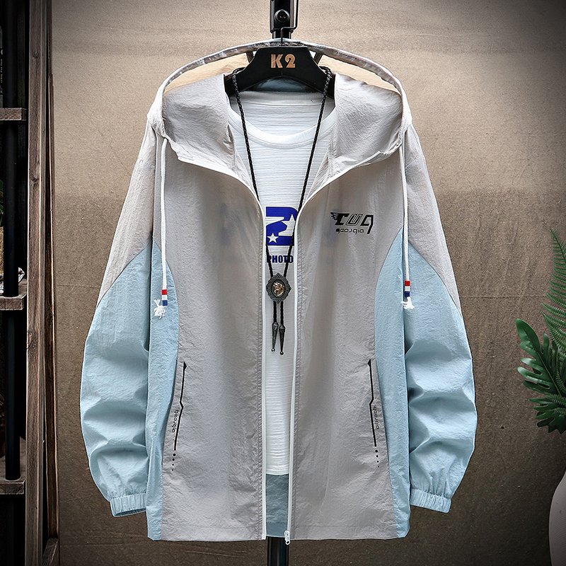 Color: Grey, Size: 2XL – Men’s Summer Korean Style Trend Ultra-thin Ice Silk Outdoor Jacket