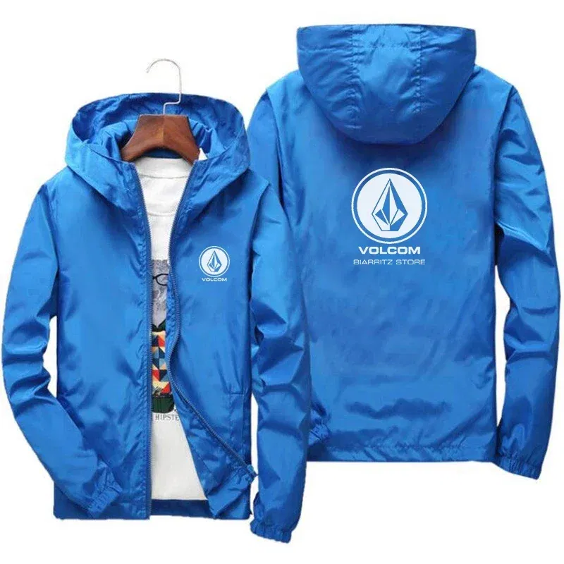 Color: Navy Blue, Size: L – Volcom – Men’s and Women’s Printed Jacket, a casual and comfortable windproof jacket with hood and zipper, suitable for couples,
