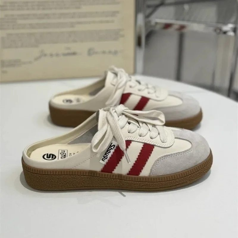 Color: Red, Shoe Size: 37 – Women Mules Shoes Sports Round Toe Flat Female Footwear Casual Sneakers Clogs Platform Summer Slip On Creeper Baotou slippers