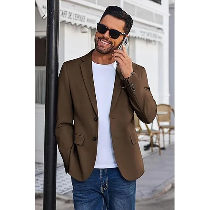 Premium Fabric — Crafted from high-quality, wear-resistant fabric, this men’s slim fit blazer is lightweight, soft, and breathable for all-day comfort. The full lining, fine stitching, and neat tailoring ensure a polished look and a smooth wearing experience.