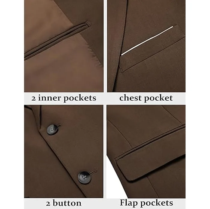 Classic Design — Designed with a modern slim fit, this blazer features a notched lapel, two flap pockets, a chest patch pocket, and two inner pockets for convenient storage. The two-button closure adds a refined yet casual appeal, making it suitable for both professional and relaxed settings.