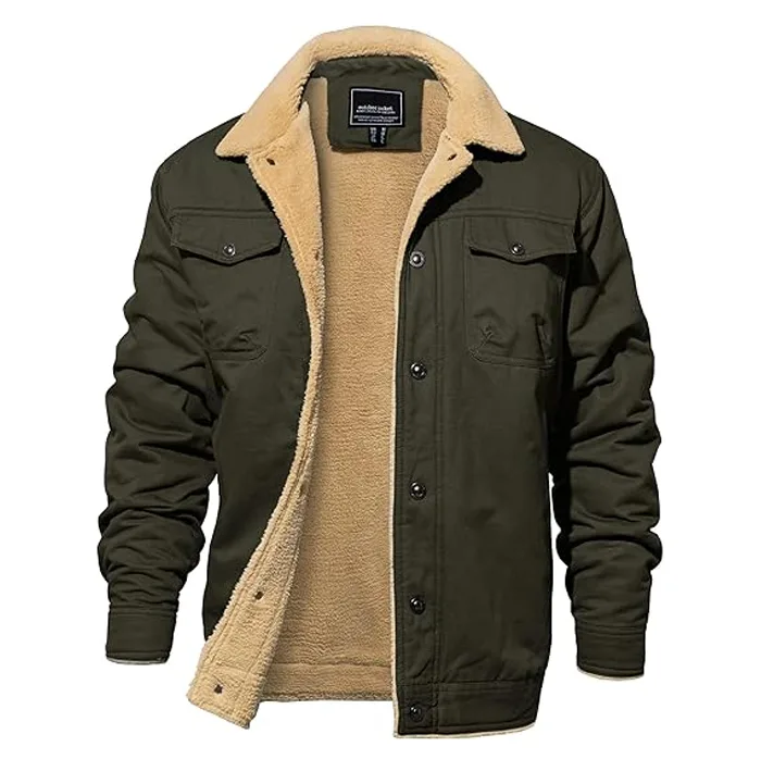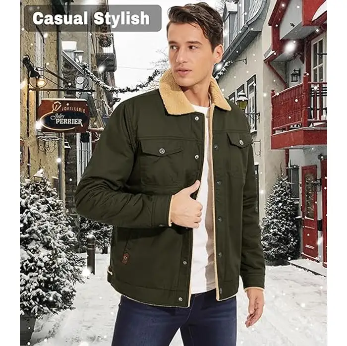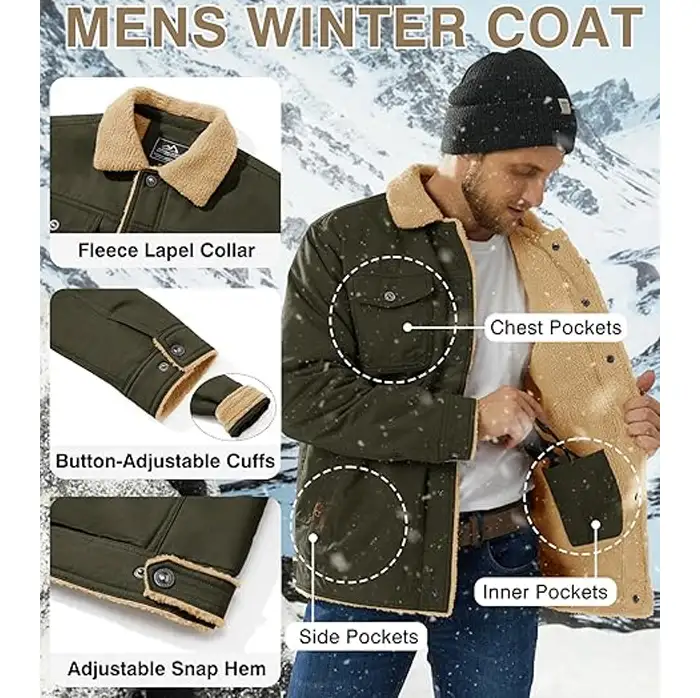 Warm & Thermal Fleece Lining: Designed with thick Sherpa fleece lining, this fleece lined jacket for men delivers superior warmth and coziness, making it an ideal choice for winter and chilly outdoor conditions.