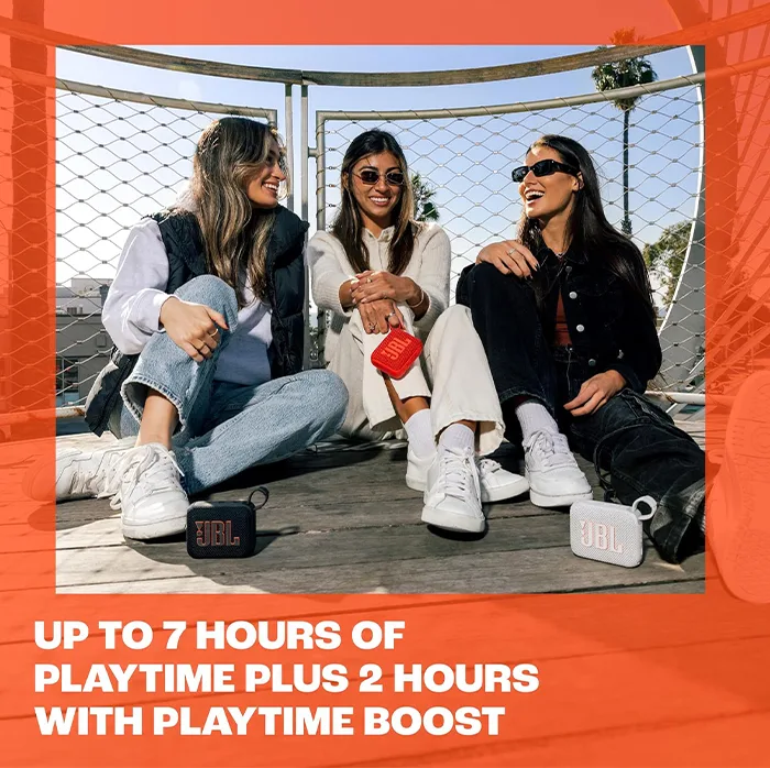 Enjoy powerful JBL Pro Sound in a compact design with the JBL Go 4 portable Bluetooth speaker. Featuring IP67 waterproof and dustproof protection, punchy bass, up to 7 hours of playtime, and ultra-portable convenience, it’s perfect for travel, workouts, pool parties, and everyday listening.