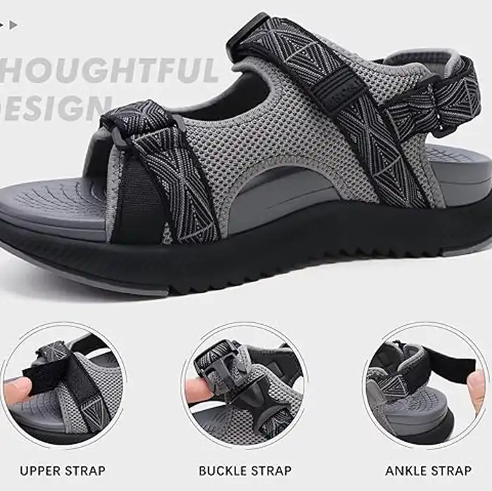 The ONCAI Men’s Hiking Sandals feature three hook-and-loop adjustable straps for a customizable, secure fit, perfect for outdoor sandals for men on hiking trails, walking, or summer adventures.