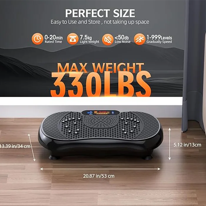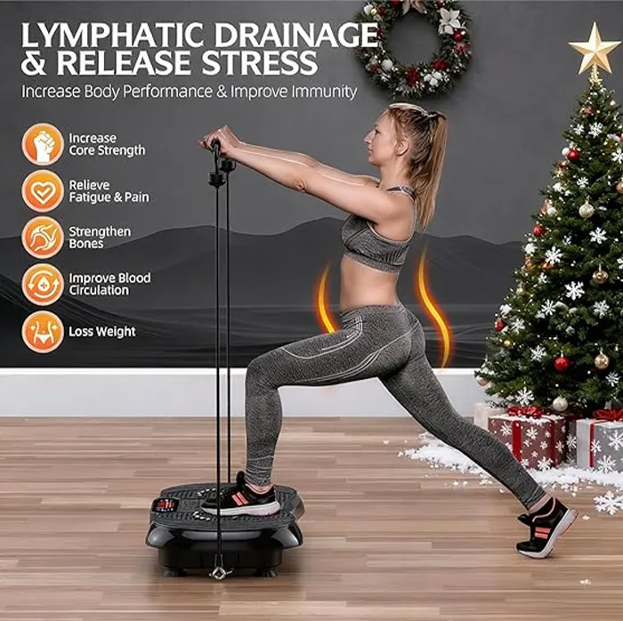 “Achieve your fitness goals at home with this vibration plate for weight loss. Full-body workouts, lymphatic drainage, and resistance bands help burn calories, tone muscles, and improve circulation—perfect for a 330lbs home gym setup.”