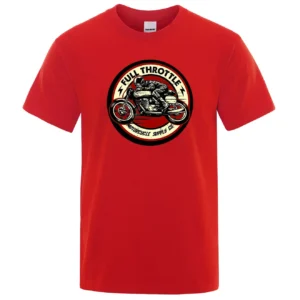 Color: Red, Size: L - Full Throttle Cafe Racer Rockabilly Biker Printed T-Shirt Men Fashion Casual Short Sleeve Loose Cotton Tshirt Summer Loose Tees