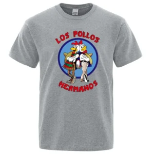 Color: WHITE, Size: M - LOS POLLOS Hermanos Funny Printed T-Shirt Men Fashion Casual Short Sleeves Summer Cotton Breathable Tshirt Chicken Brothers Tee